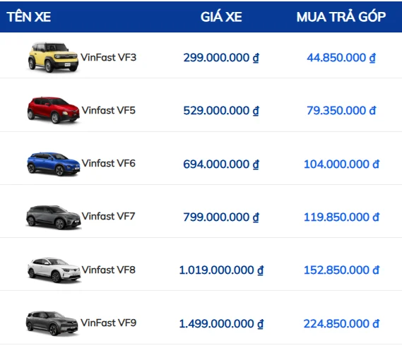 CÁC DÒNG XE vinfast