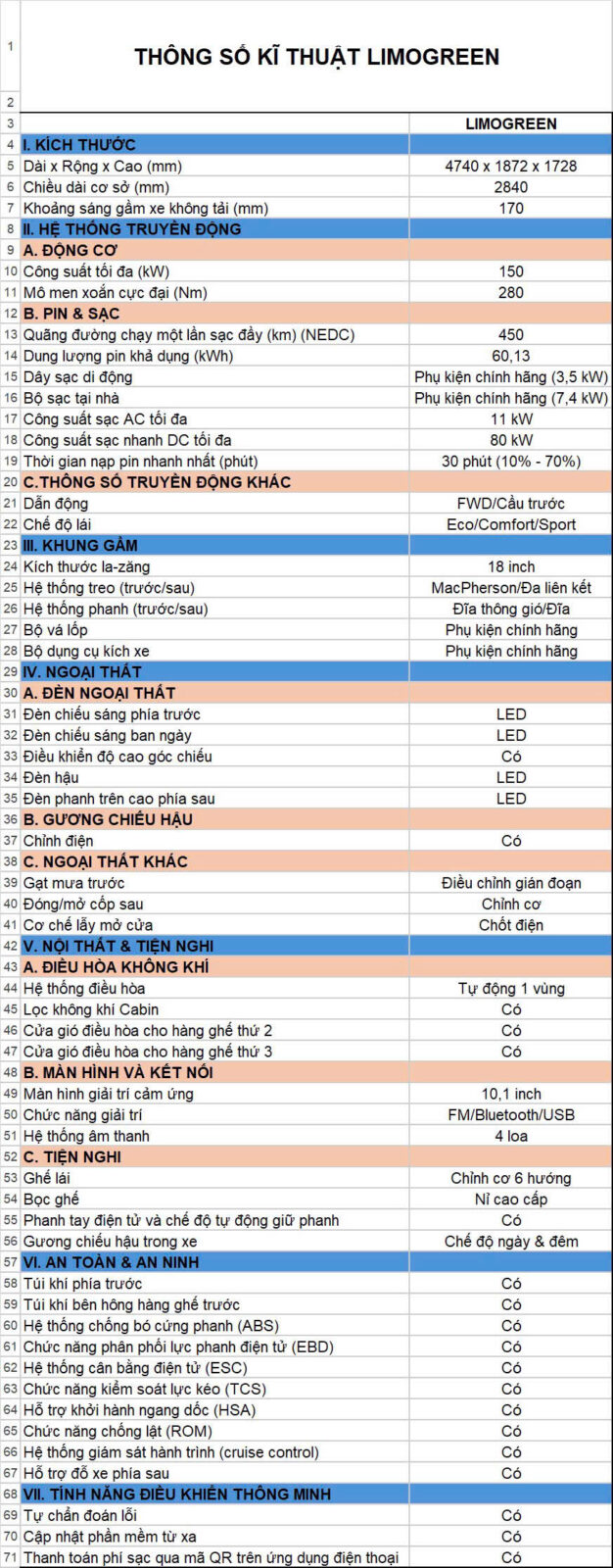 Thông số VinFast Limo Green