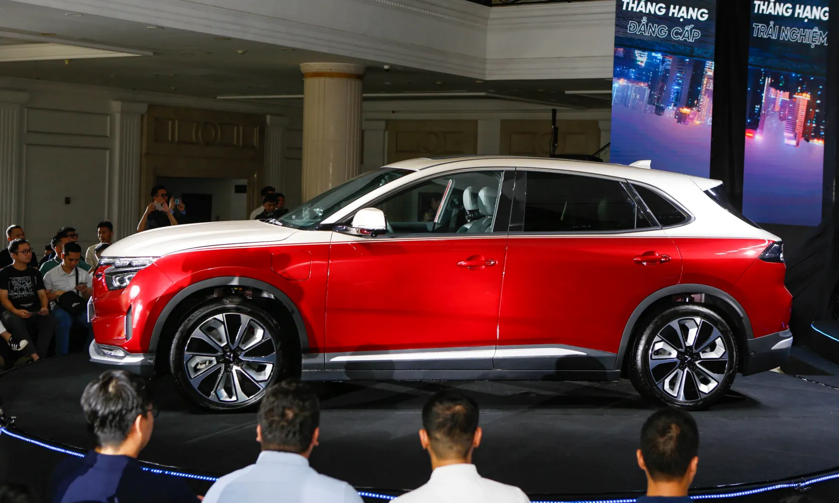 Cần số dạng nút bấm. Bệ tỳ tay kích thước lớn có thể trở thành bàn làm việc khi cần. Hệ thống đèn viền nội thất không chỉ mang đến cảm giác dễ chịu cho người ngồi, mà còn tăng thêm tính sang trọng cho mẫu xe điện nguồn gốc Việt Nam.