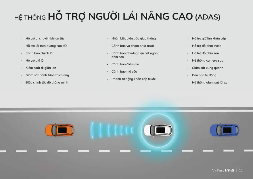 VinFast VF8 gây ấn tượng mạnh với các chuyên gia quốc tế khi sở hữu khá nhiều tính năng hỗ trợ lái tiên tiến gồm: