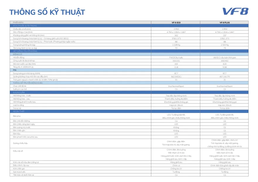 Thông số Vinfast VF8
