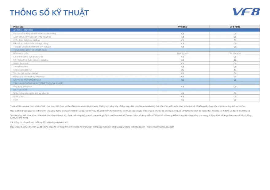 | Vinfast VF8 Eco +Pin: | 1.019.000.000 ₫ |