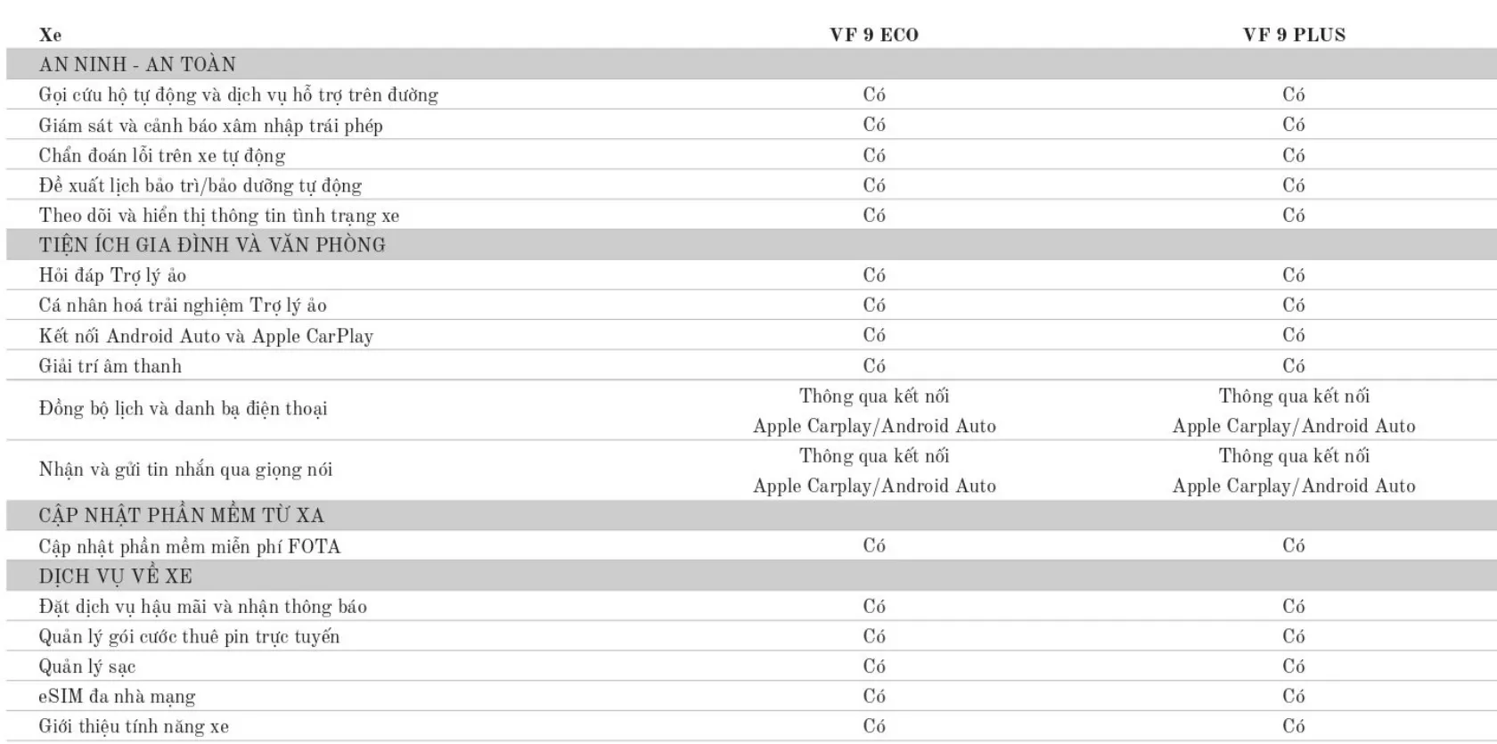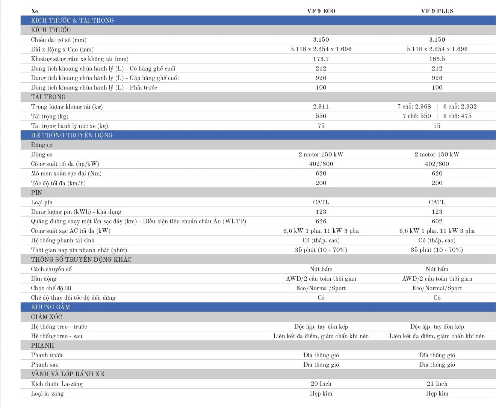 | Vinfast VF9 Eco + Pin: | 1.499.000.000 ₫ |