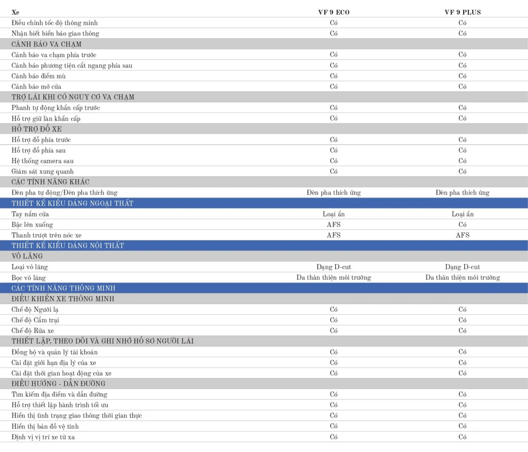 Tương tự VF8, VF9 cũng sở hữu tới 11 túi khí và hướng tới mục tiêu đạt tiêu chuẩn 5 sao ASEAN NCAP, 5 sao EURO NCAP và 5 sao NHTSA. Danh sách an toàn cụ thể của VF9 sẽ được công bố trong thời gian tới, trước mắt mẫu SUV này gây ấn tượng với nhiều công nghệ hỗ trợ lái nổi bật như: