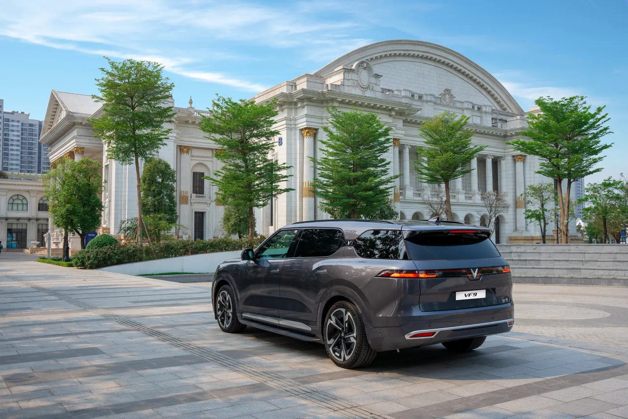 Những đường nét thiết kế hình học, có phần gân guốc tiếp tục được tái hiện ở khu vực đuôi xe VF 9, giúp hoàn chỉnh vẻ đẹp cơ bắp của mẫu SUV full-size “nhà” VinFast.